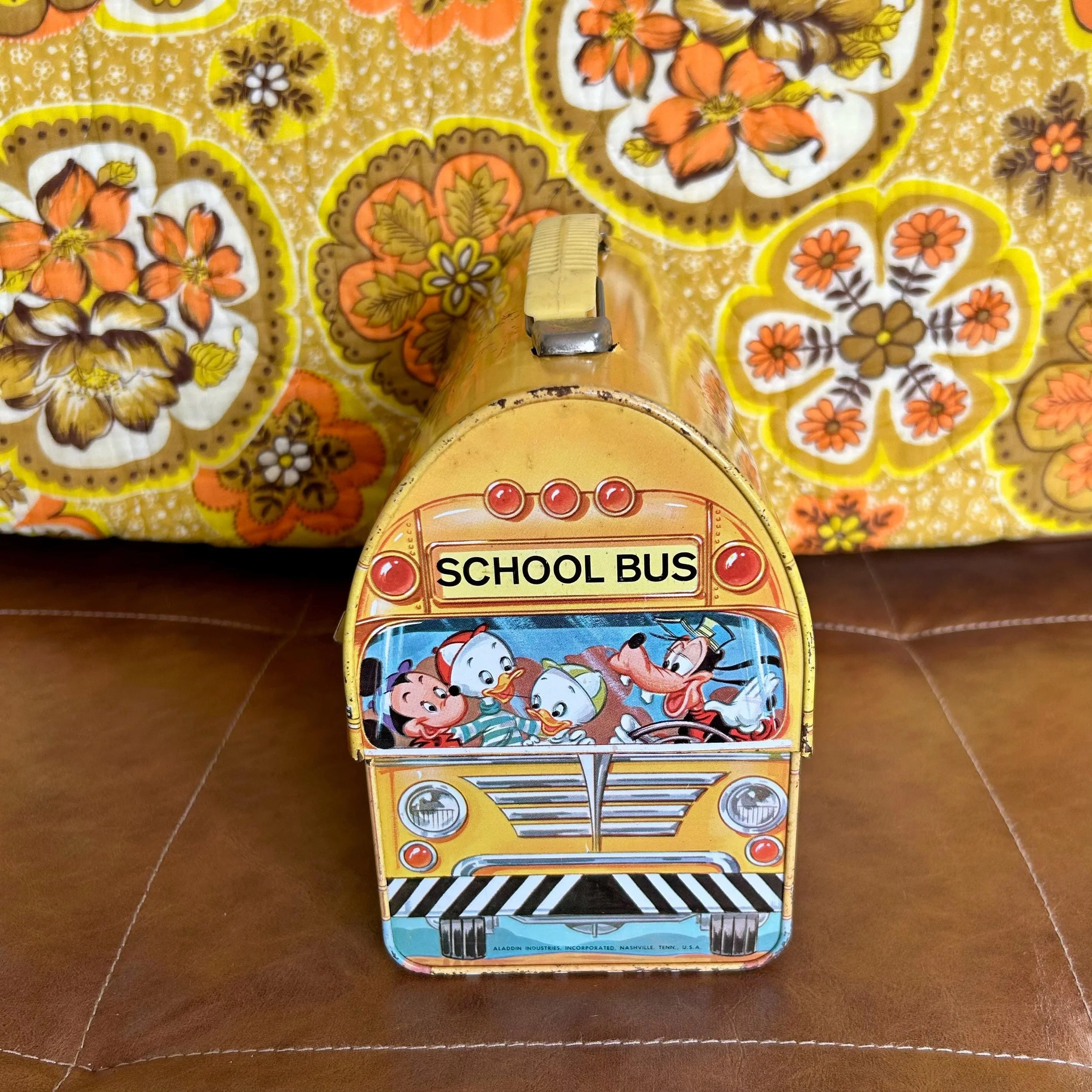 1961 Disney School Bus Lunch Box Metal Collectible Vintage Goofy Mickey Bambi Donald Duck