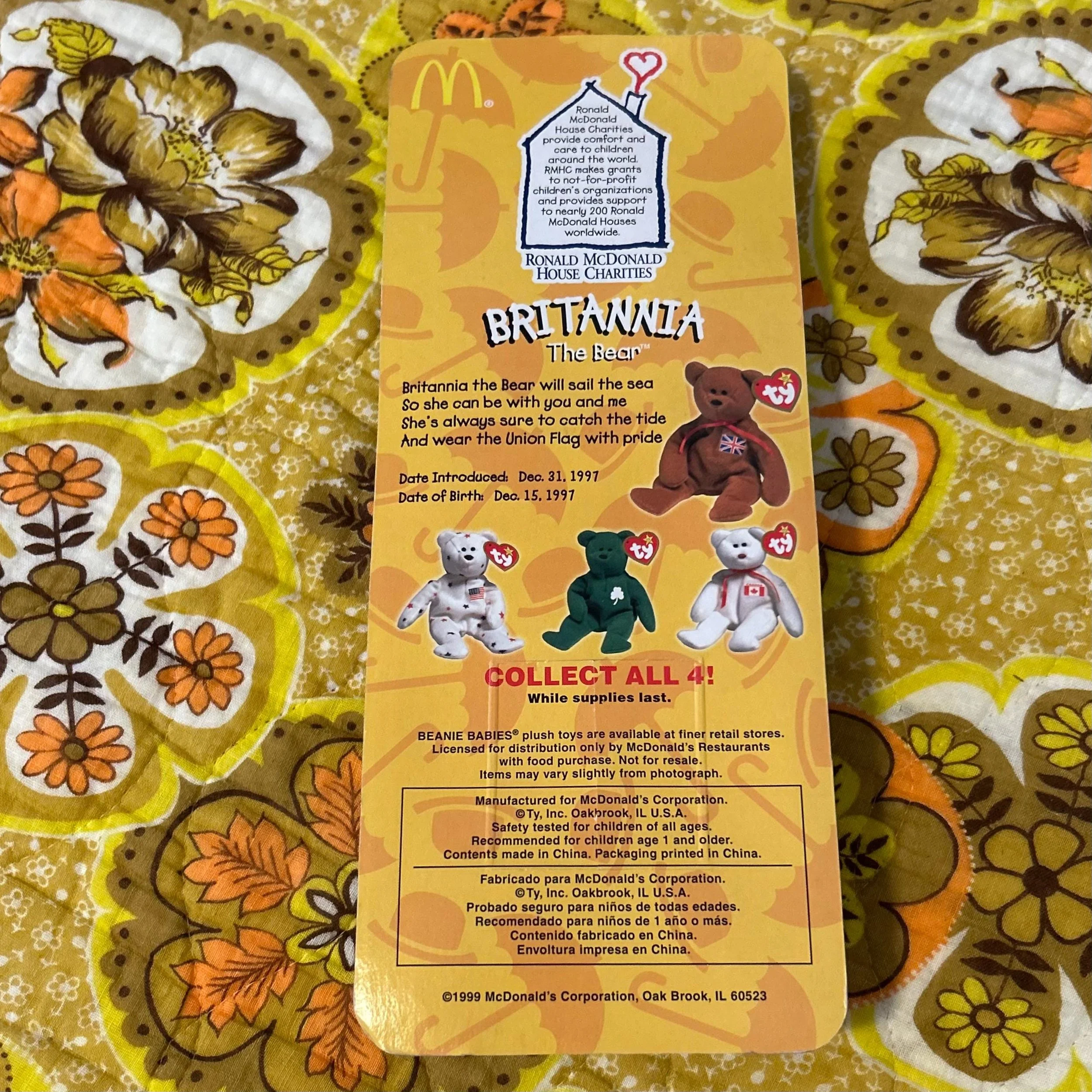 This is a brand new sealed Brittania Beanie Baby from the International Bears series in collaboration with McDonald's. It is in great condition with no flaws. Add it to your collection, gift it to a friend or loved one, or take it out and enjoy it yourself!