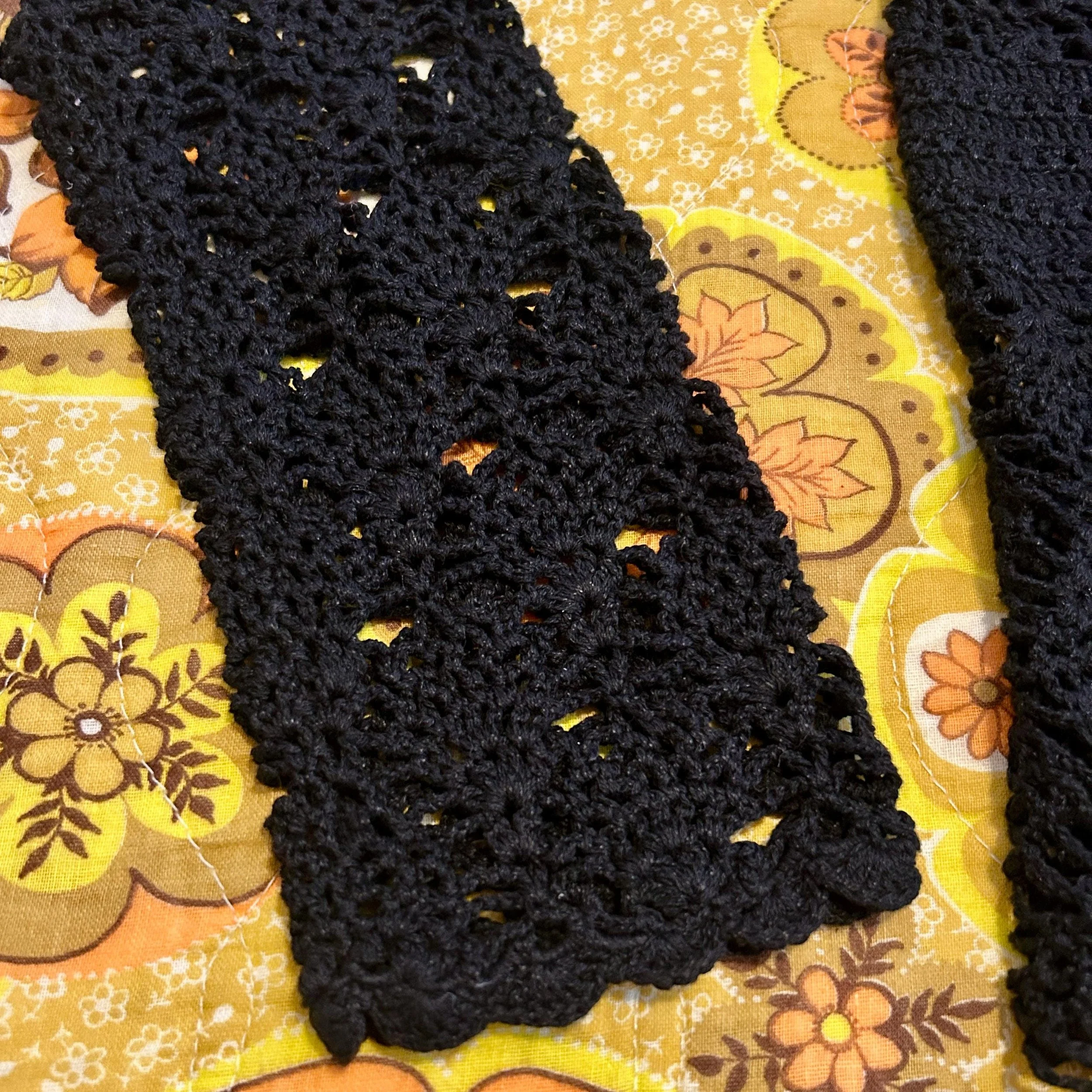 Super cute and the perfect spring and summer cardigan! This is a cute August Silk crochet black open knit long sleeve sweater. It is a shorter cut and has a detail around the waist to accentuate you. This sweater is in great condition with minor wear from previous use. It would be great as a beach cover up, layered over a tank top, or thrown overtop a dress. So many ways to style this adorable 00s style piece!